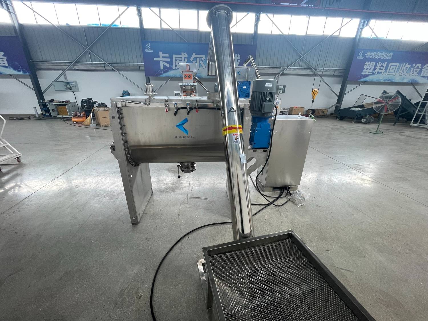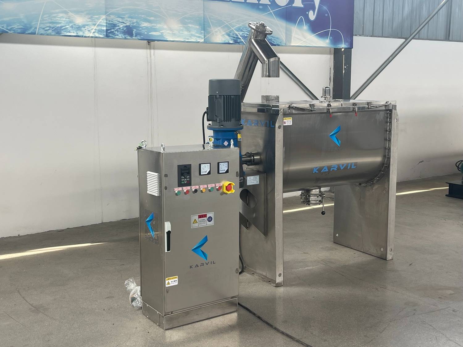 Ein kolumbianischer Kunde in der Lebensmittelindustrie benötigte eine zuverlässige und hygienische Lösung für das Mischen von Zucker, Süßungsmitteln und Farben für Lebensmittelqualität . Karvil Machinery stellte ein benutzerdefiniertes 500-l-horizontaler Ribbon-Mixersystem mit integriertem Schraubförderer mit vollem SS304-Kontaktflächen und Bedienersicherheitsschutz bereit.